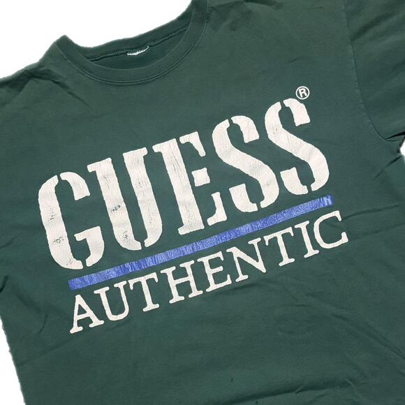Green guess cotton streetwear tee with a few flaws (L)