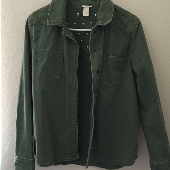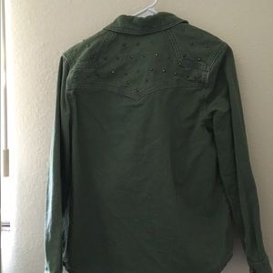 Super cute green jacket with embroidered studs on the top on the jacket, only worn a couple times