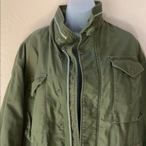 Cool jacket.. thick does show some sign of wear. Measurements in photo I would say this is a large. Reasonable offers considered