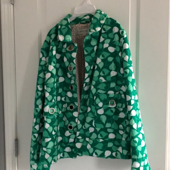 Green jacket great condition no stains tears or rips or fading this jacket would be perfect for St. Patrick’s Day size large
