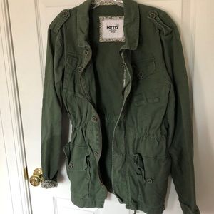 How cute is this?! I love the military style and I love how versatile it is! You can wear it zipped up, buttoned up, cinched waist (has inside draw stings to give you that hour glass shape), or as an oversized/looser look! It’s in pristine condition and only worn a handful of times!