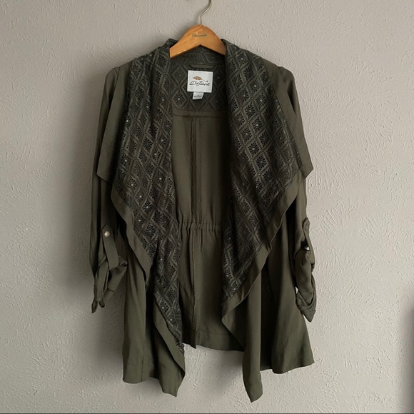 Oblige green. Open drape jacket