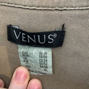 Green jacket with lace up sleeves, a ruffled back, and distressing. Very cute, was my moms but doesn’t fit her anymore. It fits more like a large than an extra large