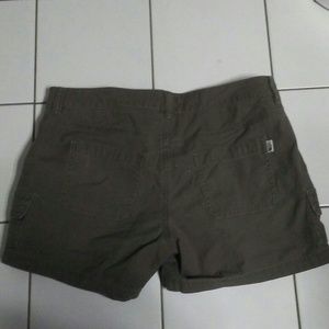 Denim green shorts. Never worn. Botton clasp. multiple pockets.