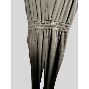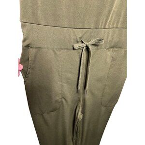 Green jumpsuit MEDIUM sleeveless pockets wide legs stretch Comfortable