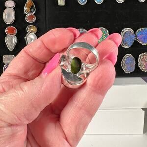 Green labradorite fire gemstone solid sterling silver substantial ring size 7.5
