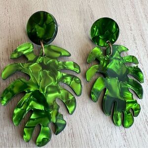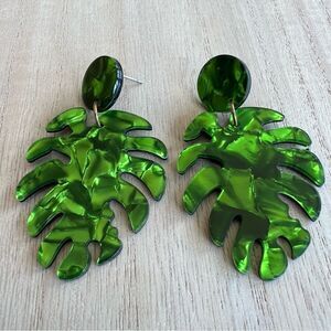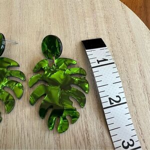 Green leaf vibrant statement acrylic beachy miami post earrings