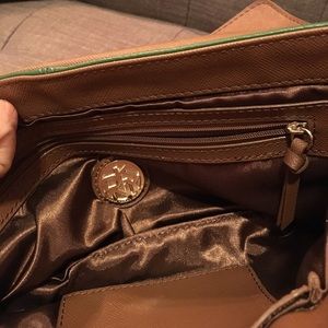 Green leather DKNY bag with gold hardware. Gorgeous. Amazing condition. Approx 11.5 inches wide 6.5 inches tall. Bottom approx 2.5 inches wide. Strap cam be unattached and worn as clutch-strap measures about 20.inches.