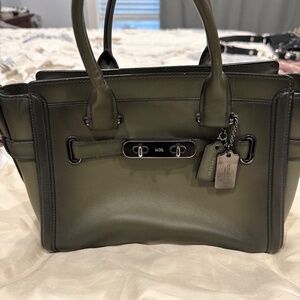 Only used three times green leather coach purse. Comes with storage bag and shoulder strap.