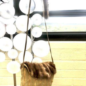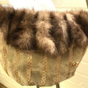 Vintage green suede leather cross-body with mink & snake trim made in Italy by Carlo Fiori