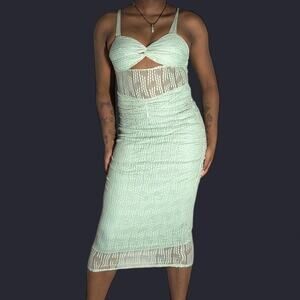 Green midi dress with built-in bra and a flowy, stretchy design. Sheer at the claves and ribs. Size small.