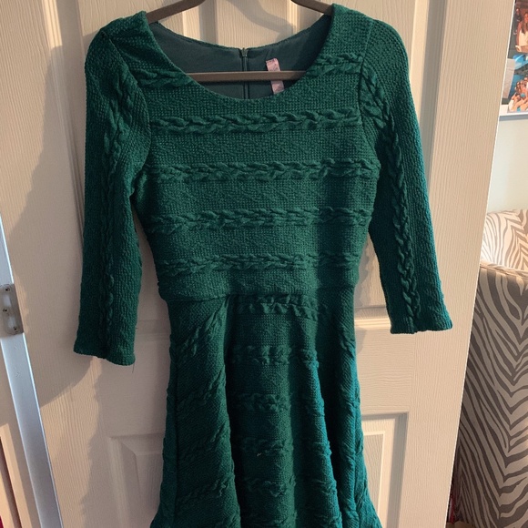 Green thick quarter-length sleeve dress.....great fro holiday parties!