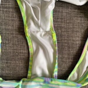 Great condition, Green and purple tie dye inspired hipster bikini bottom size Large. Ruched butt.