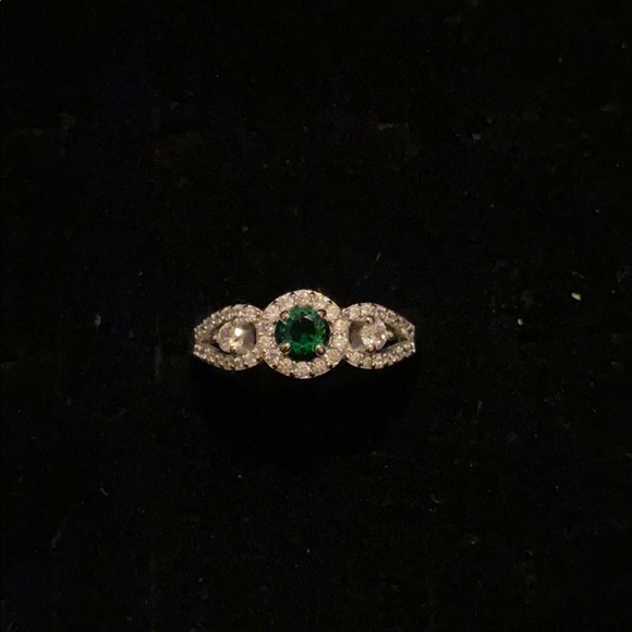 Beautiful ring with a more traditional look; emerald-green crystal with clear crystals