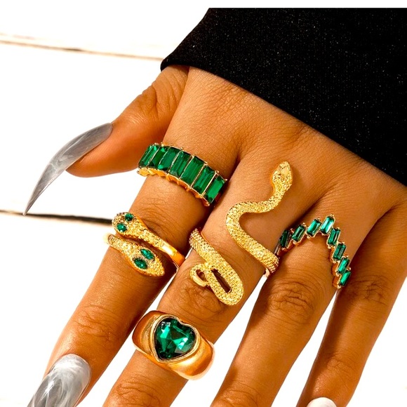 5pc green and emerald ring set