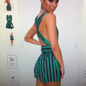 Green stripe tie back romper 97% polyester 3%elAstane work for a few hours great condition