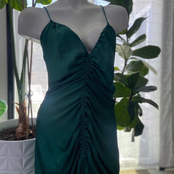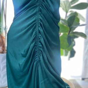 Green satin ruched slip dress Free People XL