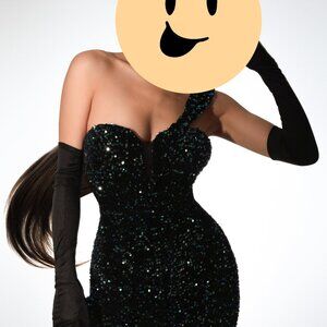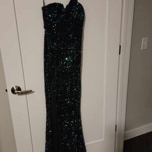 Green sequin one shoulder dress