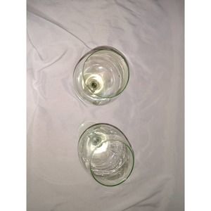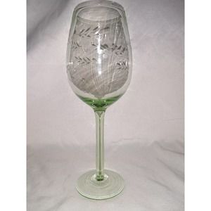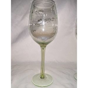 Beautiful set of green stemware wine glasses (set of 2). Etched glass looks to be Holley berries.