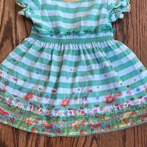 Green striped Matilda Jane Backyard Oasis dress, size 3-6M. Like new condition