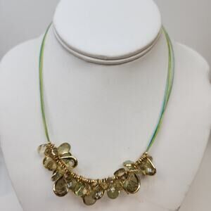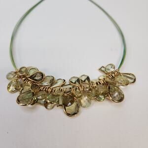 Green teardrop faceted acrylic gold tone Edged bead 12 " choker boho hippie