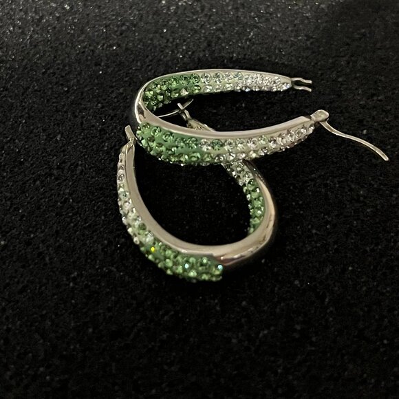 Green to White Ombre Crystals Inside Out Hoop Earrings Sterling Silver 925 AU