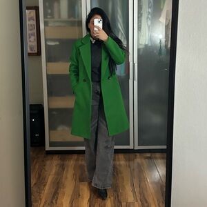 Stylish green coat perfect for any occasion. Adds a pop of color to your outfit.