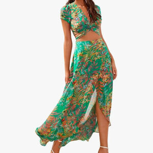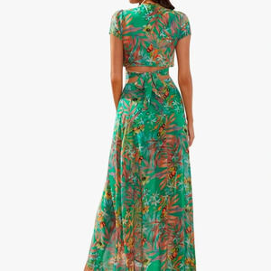 Skirt has built in shorts and side zip closure. Top is lined. Poly. Small: Shoulder: 13.4", Bust: 32.7", Waist Size: 27.6", Hip Size: 39.8", Top Length: 15.0", Skirt Length: 42.5", Length: 15.0", Sleeve Length: 6.1", Cuff: 13.2"