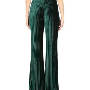 Chenille, folds, high waisted, flare and wide leg. Regular fit and no pockets.