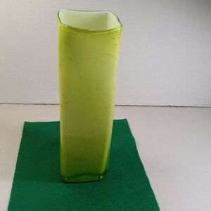 Green w/ Orange Streaks White Inside Art Studio Hand blown Vase Cottagecore