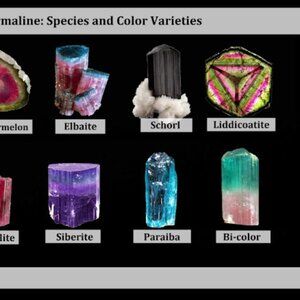 Tourmaline can be green, blue, yellow, pink-red, colorless, or color-zone. Even a slight change in composition produces an entirely different colors
