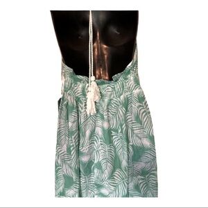 Green white floral open back halter beach cover up crochet maxi dress size small