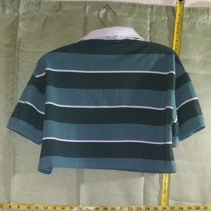 A cute and casual cropped polo top with "LOVE" embroidered on one side of the button placket. In gently-used, excellent condition. A fun piece to add to your wardrobe in juniors size M, the fit is boxy & casual. * Please note, measuring tapes are for rough reference only! *