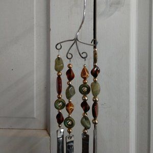 Green/Brown/Gold Handmade Upcycled Recycled Silverware Windchime