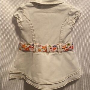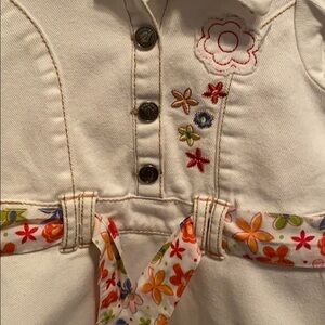 GreenDog Demin Dress White Size 12m 100% Cotton Floral belt 4 front buttons