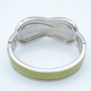 Green enamel hinged cuff bracelet with rope motif and silver tone beaded detail and hardware.