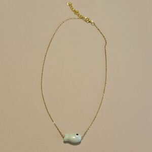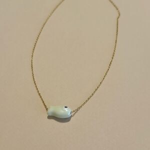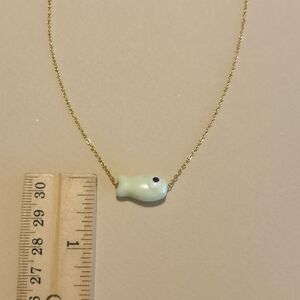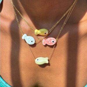 Elegant gold chain necklace featuring a pastel green fish pendant. Perfect for adding a touch of whimsy to any outfit.