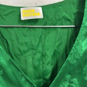 Green Floral Print Silk Dress Size 40 FROM FUTURE - NWOT Button Down Cut Out Bow