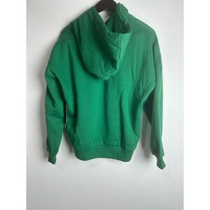 A hoodie and current trend jacket in solid color featuring a loose silhouette, a drawstring, long cuffed sleeves, a drop shoulder, and a hip length.