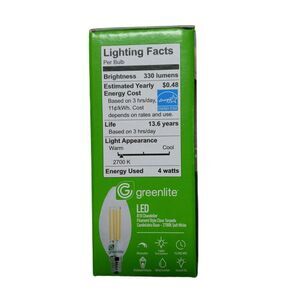 Light up your home with this 4-pack of GreenLite LED chandelier bulbs! These bulbs use only 4W of power, equivalent to a 40W incandescent bulb, saving you money on your energy bill.