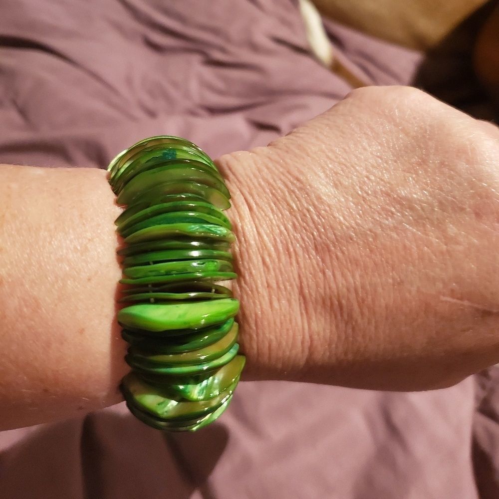 Green Shell Bracelet. Stretchable