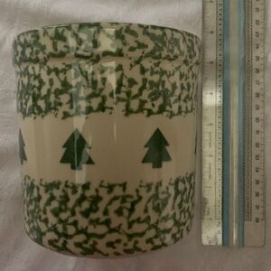 Green Spongeware Retired Small Crock Pottery Henn Workshops Trees