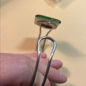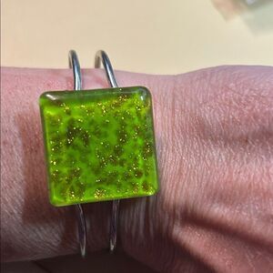 Elegant bracelet featuring a vibrant green square stone set on a sleek silver band. Perfect for adding a pop of color to any outfit.