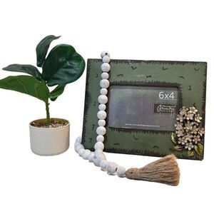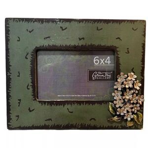 This beautiful photo frame from Green Tree Gallery is the perfect addition to any home decor. Its floral pattern and distressed style give it a rustic, country feel that is suitable for all occasions. The frame is made of metal and wood, and can hold one photo with a size of 4 x 6 inches.