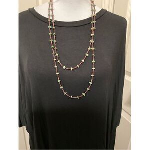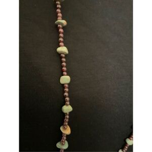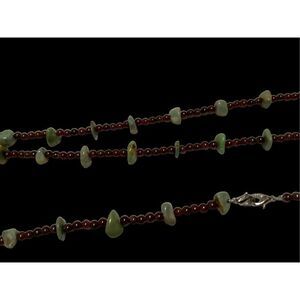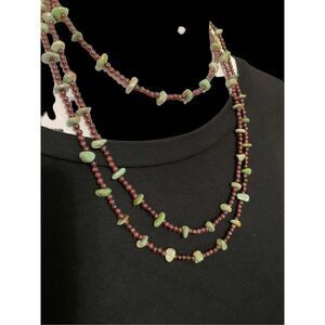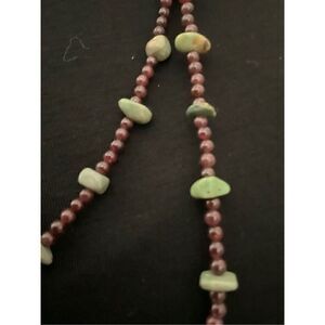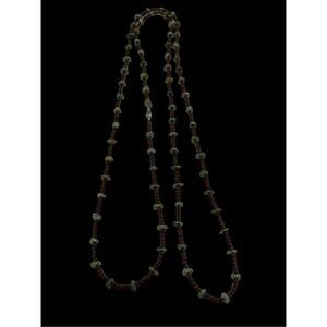 Absolutely gorgeous real natural green turquoise gemstones ( not Howlite) and natural real Mozambique garnet gemstone beaded necklace that is extra long( measurements in photos) that can be worn doubled, tripled or single or layered with other necklaces. Just a stunning handmade piece that goes great with my Double D Ranch shirts.