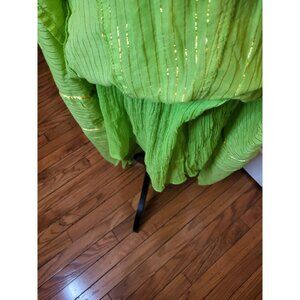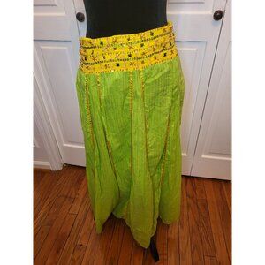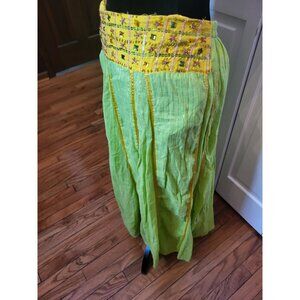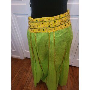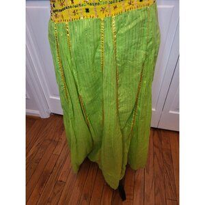 Green/Yellow Metallic Gold Jeweled Boho Midi Skirt L Hippie Gypsy Festival