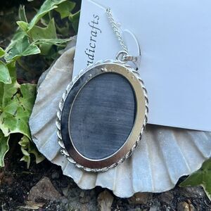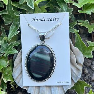 Green Zebra Jasper Pendant Necklace 18 Inches in Silvertone 65.00 ctw