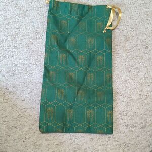 Elegant green drawstring pouch with gold accents. Perfect for small items.
