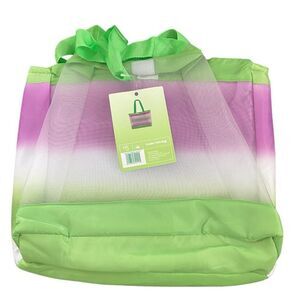 Stylish and functional cooler tote bag in vibrant green and pink. Perfect for keeping your items hot or cold on the go. Collectible—Five Below.