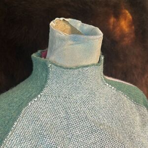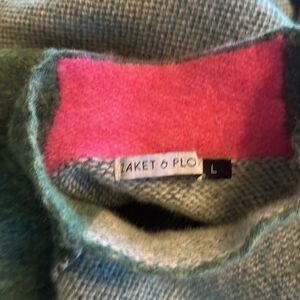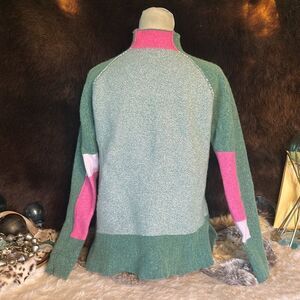 Stay cozy and stylish with this green and pink women's sweater. Perfect for any casual outing. 55% superfine Marino wool/20% cotton/25% nylon.